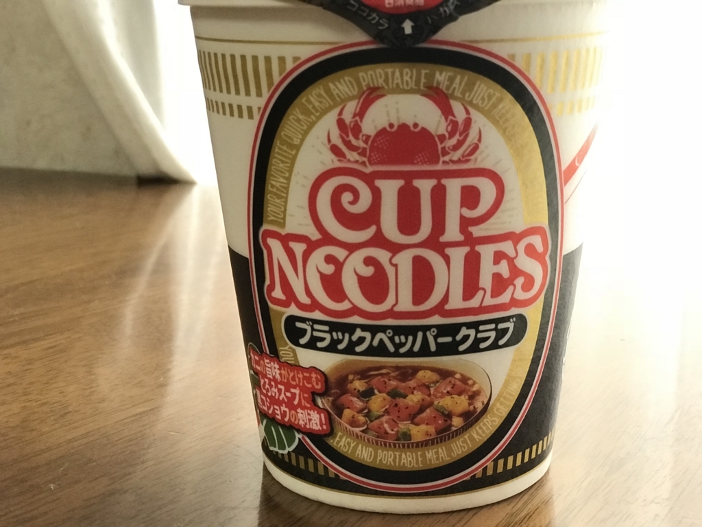 [ま]カップヌードル「ブラックペッパークラブ」/とろみのある蟹風味スープに黒胡椒がうまい @kun_maa